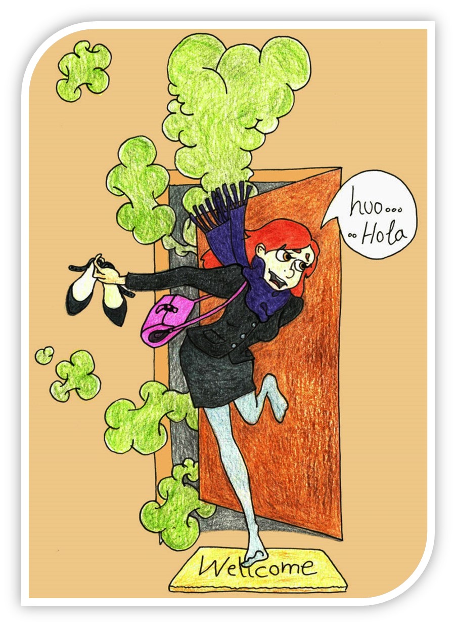 Doy con ella. Está cerrada. ¿Qué esperaba? Pues claro tontaina. Huyo como huyo Montoya pisándome la…bufanda y con el último tropezón consigo abandonar ese holocausto pasajero que acabo de organizar. Como alma que lleva el diablo doy un portazo a la puerta.