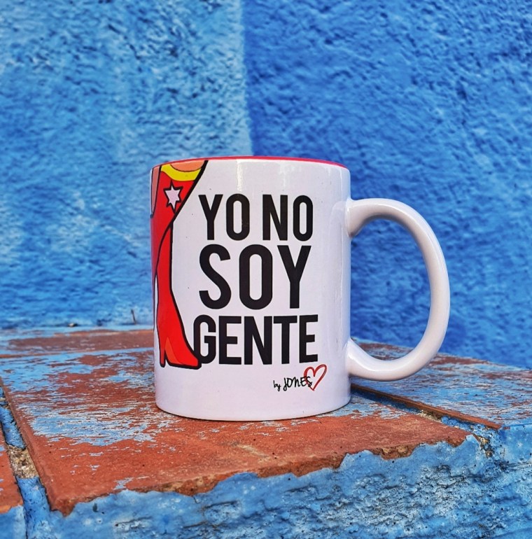 Taza de cerámica con interior rojo. Tamaño standard. Te va a parecer que llega vacía pero ¡al contrario! Va llena de toda la buena vibra, energía y buen rollo de Jones. ¡Para ti! ¡Que tampoco eres gente!